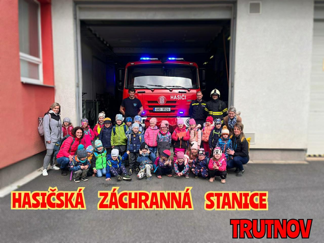 Po přivítání velitelem směny na trutnovské stanici byly děti seznámeny s náplní profesionálního hasiče, pověděli jsme si něco o tísňových číslech, zažili jsme, jak vypadá, když se vyhlásí poplach a postupně jsme si prohlédli zázemí stanice. Dále jsme se dostali do garáží, kde to všechny zajímalo nejvíce. Hasičská auta … ke každému z nich se děti dozvěděly, co k čemu slouží. Také nás páni hasiči seznámili s výstrojí a technikou potřebnou k zásahu. Návštěva HZS se nám všem moc líbila. Za aktivitu a velký zájem dostaly děti od hasičů malý sladký dáreček. Moc všem děkujeme!