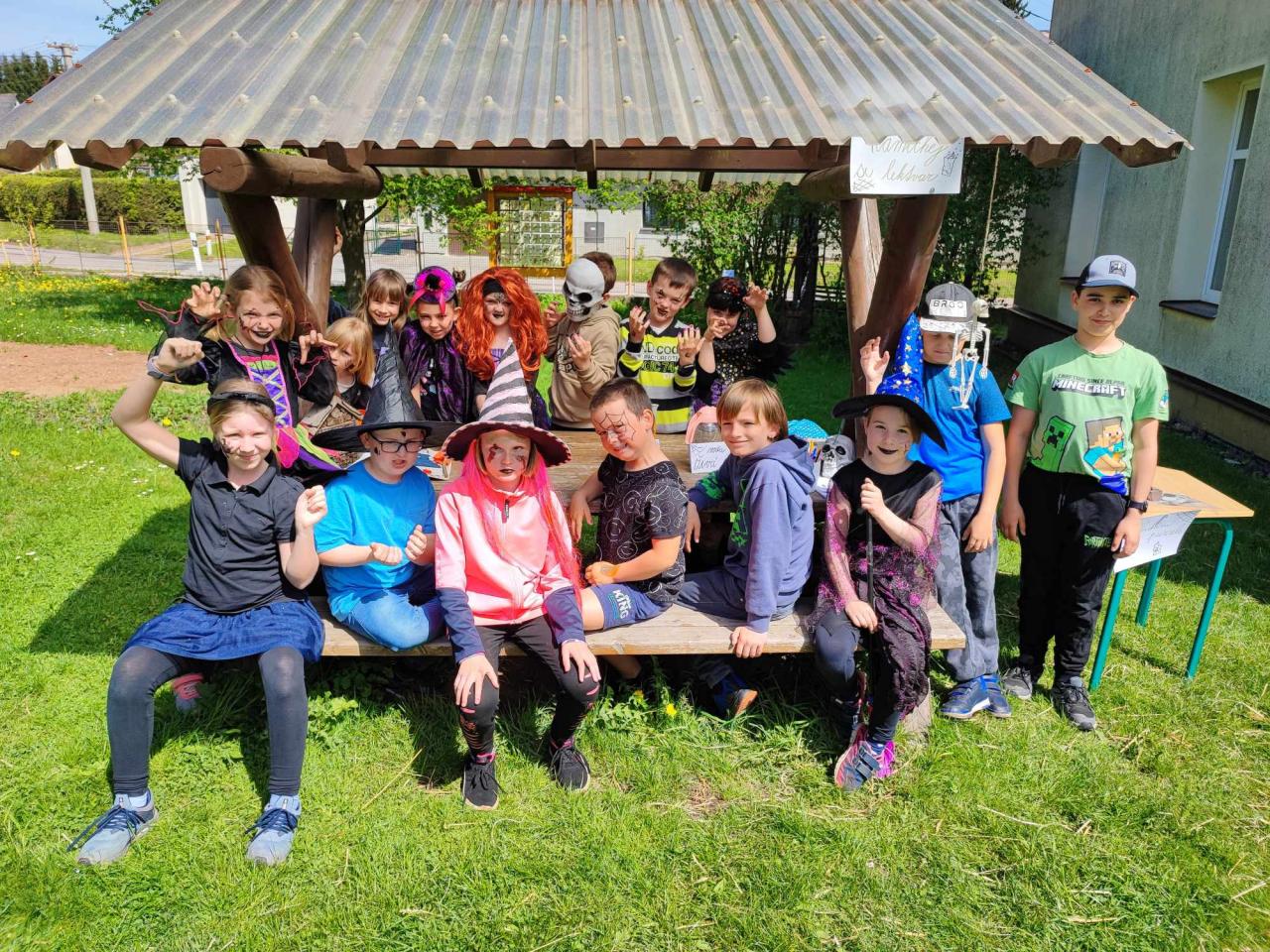 Moc nás všechny potěšilo, že si velká většina dětí připravila kostýmy, které podtrhly připravenou akci. Děti plnily v malých skupinkách úkoly, které ověřily jejich schopnost spolupráce. Následně všichni protáhli své svaly a kosti, když plnili různorodé činnostní úkoly – např. chytali pavouky, lovili hmyz a létali na koštěti. Zahradou se nesly různé písně podtržené smíchem a spokojeností dětí. Odpoledne se završilo opékáním a následným upálením čarodějnice. Všem dětem děkujeme za aktivní a příjemné odpoledne, které si určitě všichni pořádně užili.